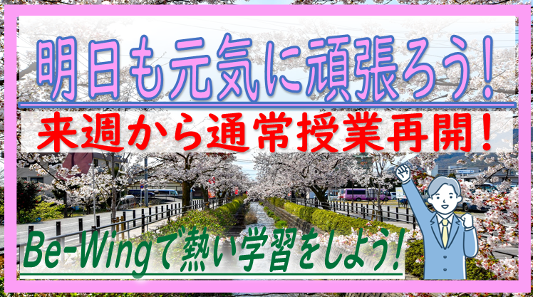 また来週から、通常授業が再開しますので、また一緒に頑張っていきましょう!