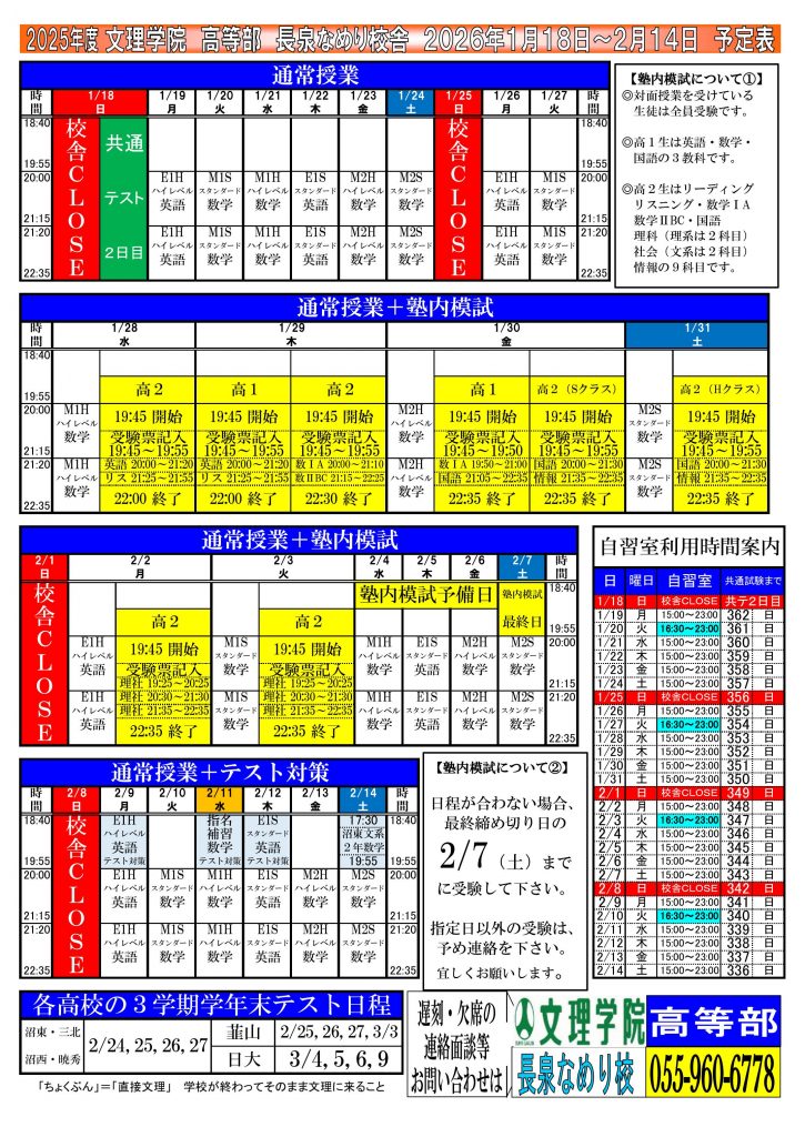 いよいよ高3生は共通テスト本番、そして高1生・高2生の皆さんは学年末テストが近づいてきましたね。校舎内も、心地よい緊張感と熱気に包まれています。