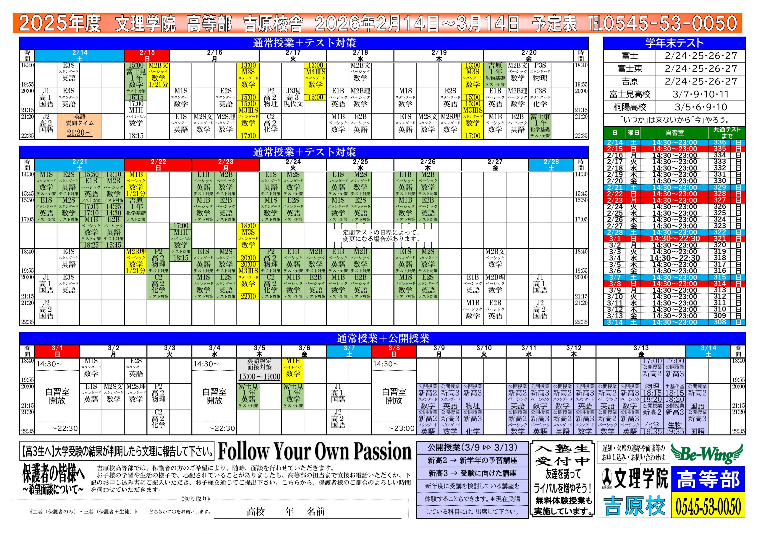 国公立大学前期試験まであと1週間となりました。今日面接練習を行った生徒は来週月曜日に九州の宮﨑へお父さんと向かうそうです。
