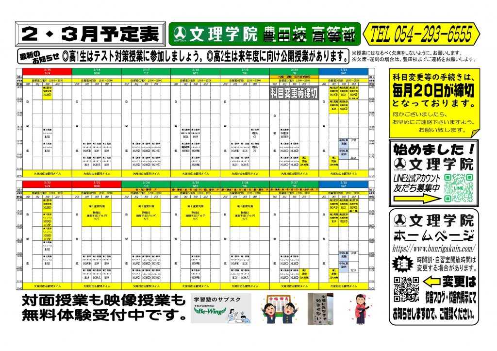 ◎2月10日より、学年末試験の対策がスタートします。有終の美を飾り、新年度を気持ちよく迎えよう。