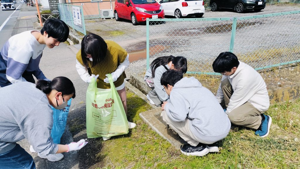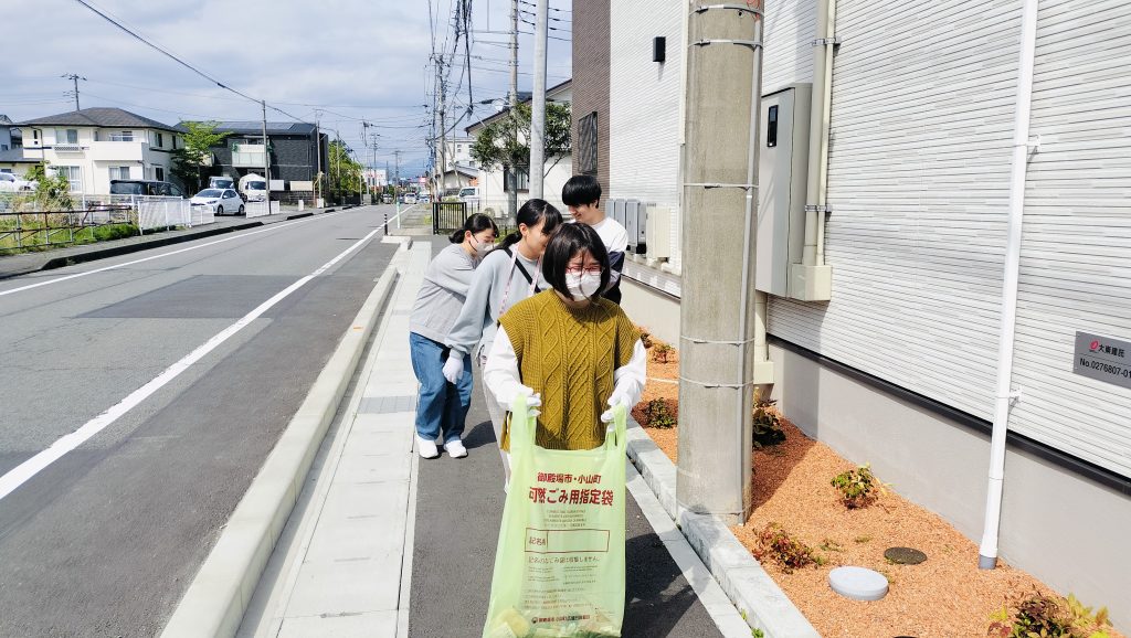 今回私は高校3年生を引率して大月校舎の周辺エリアのゴミ拾いをしました。