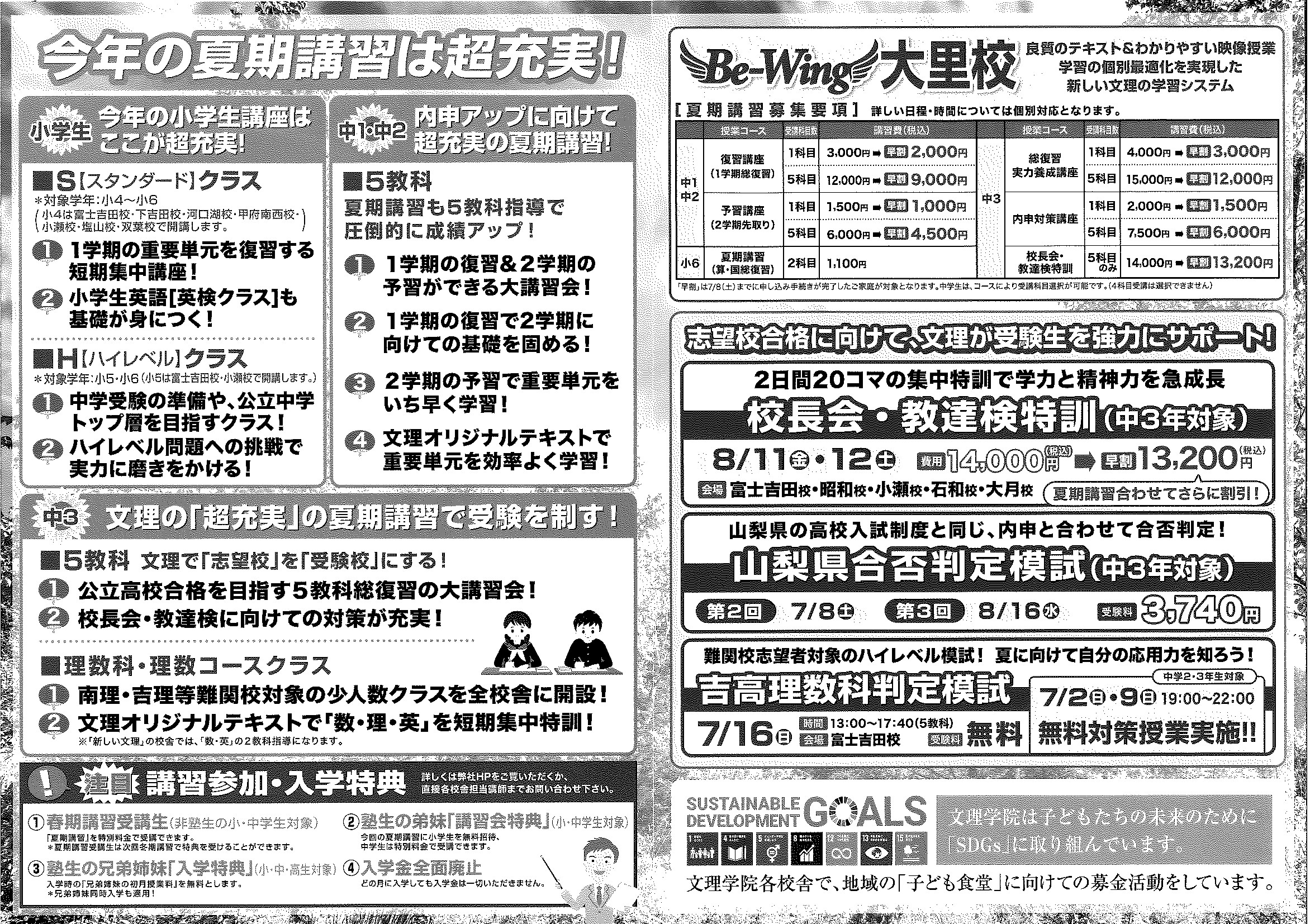 文理学院の塾生以外の皆さんは、お近くの校舎、または甲府南西校舎までご連絡ください。