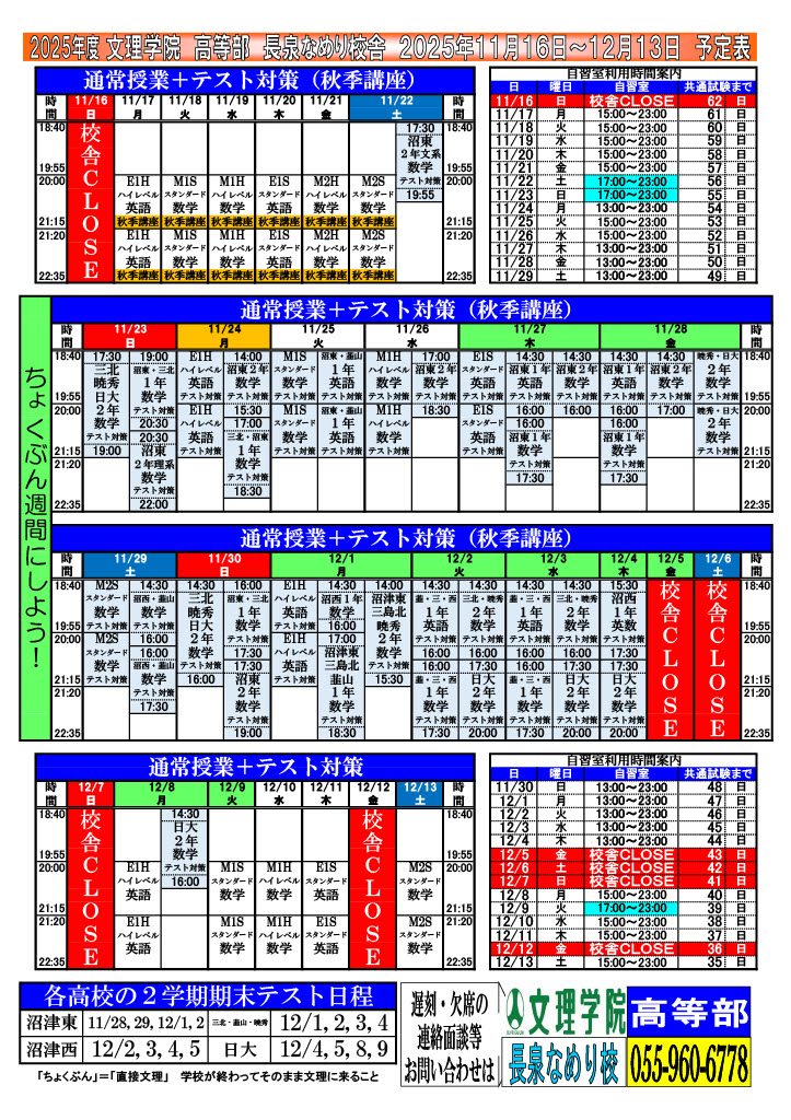 東桂中・西桂中のテスト3週間前となる11月7日(金)より、2学期期末テスト対策をスタートいたします。テスト対策無料体験授業も承っております。この機会に個別指導授業のテスト対策を体験されてみてはいかがでしょうか。通塾日、通塾時間につきましては、通常授業と同様にお客様のご希望で決められます。