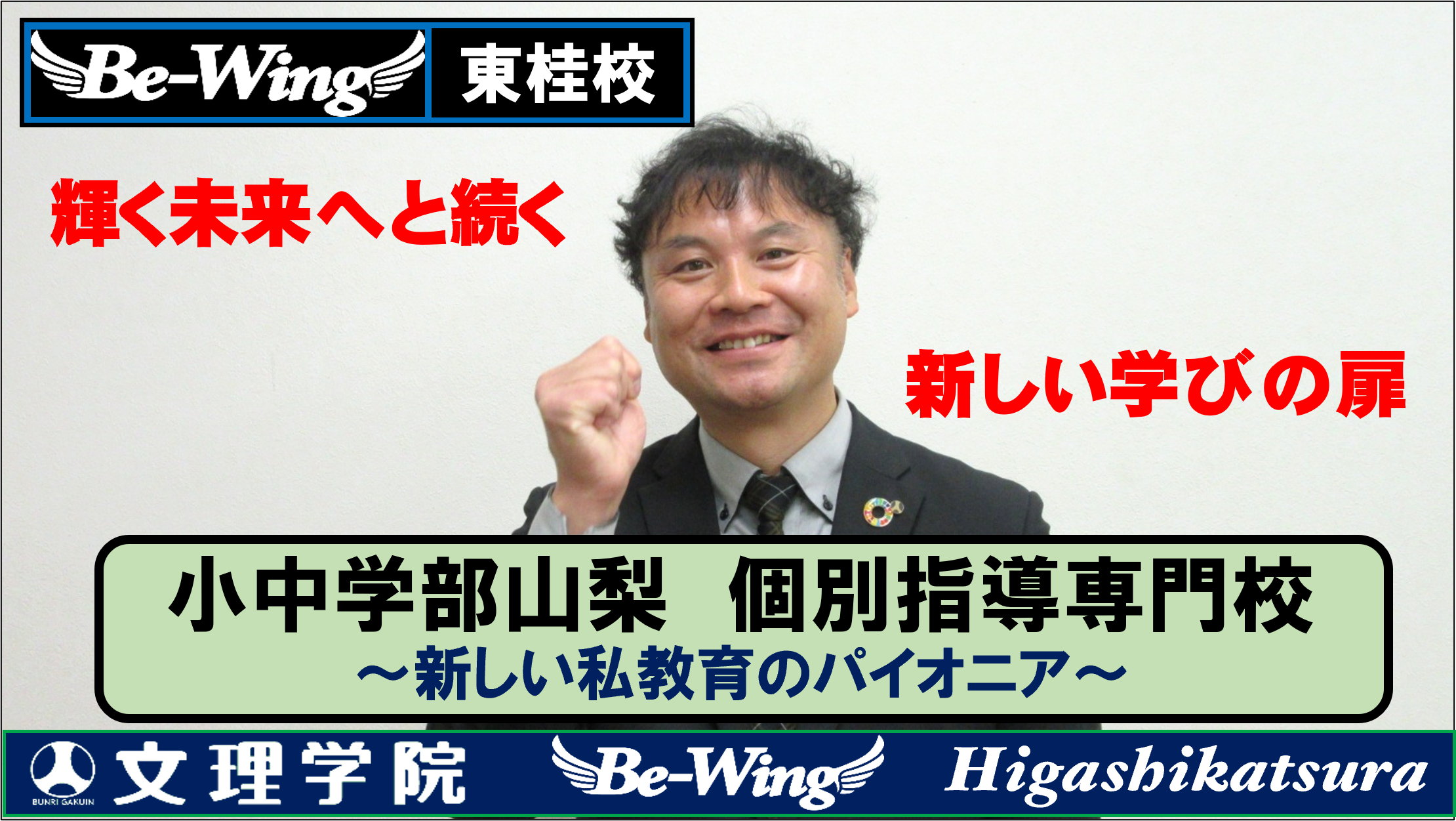 文理学院山梨 Be-Wing小中学部専門校 東桂校 校舎責任者の仲野です。
