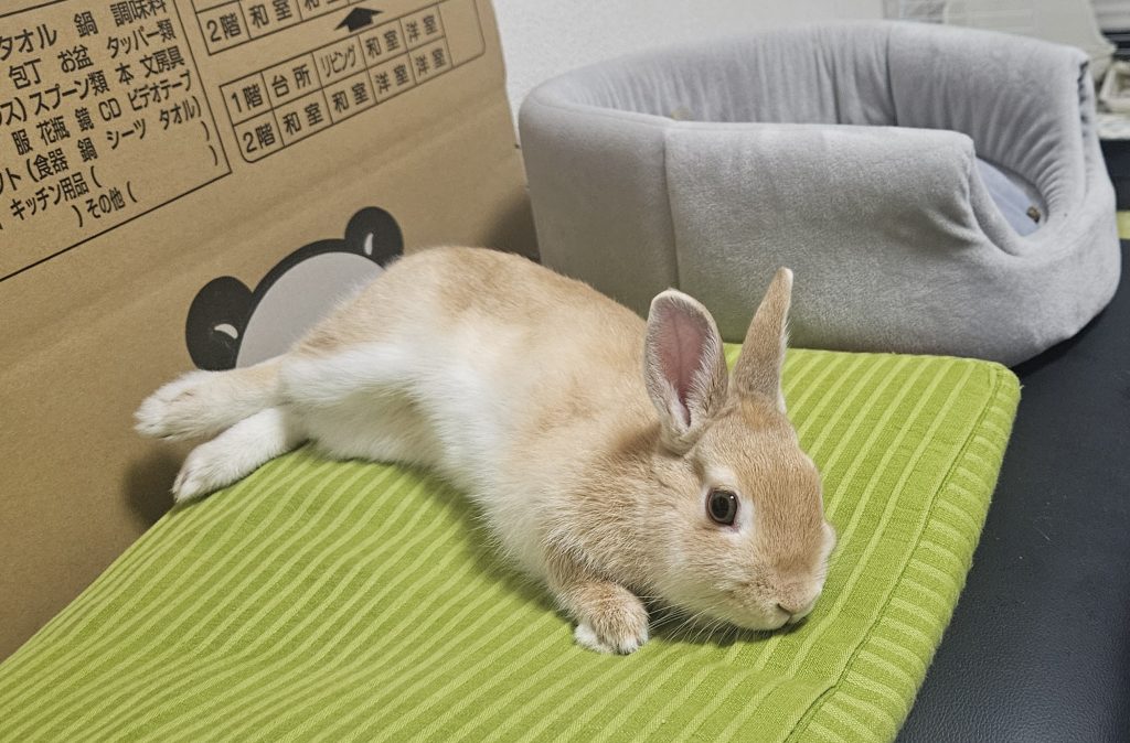 本日はご飯を食べ終わった後に、座布団の上で寝転がっているねぎまくんです。