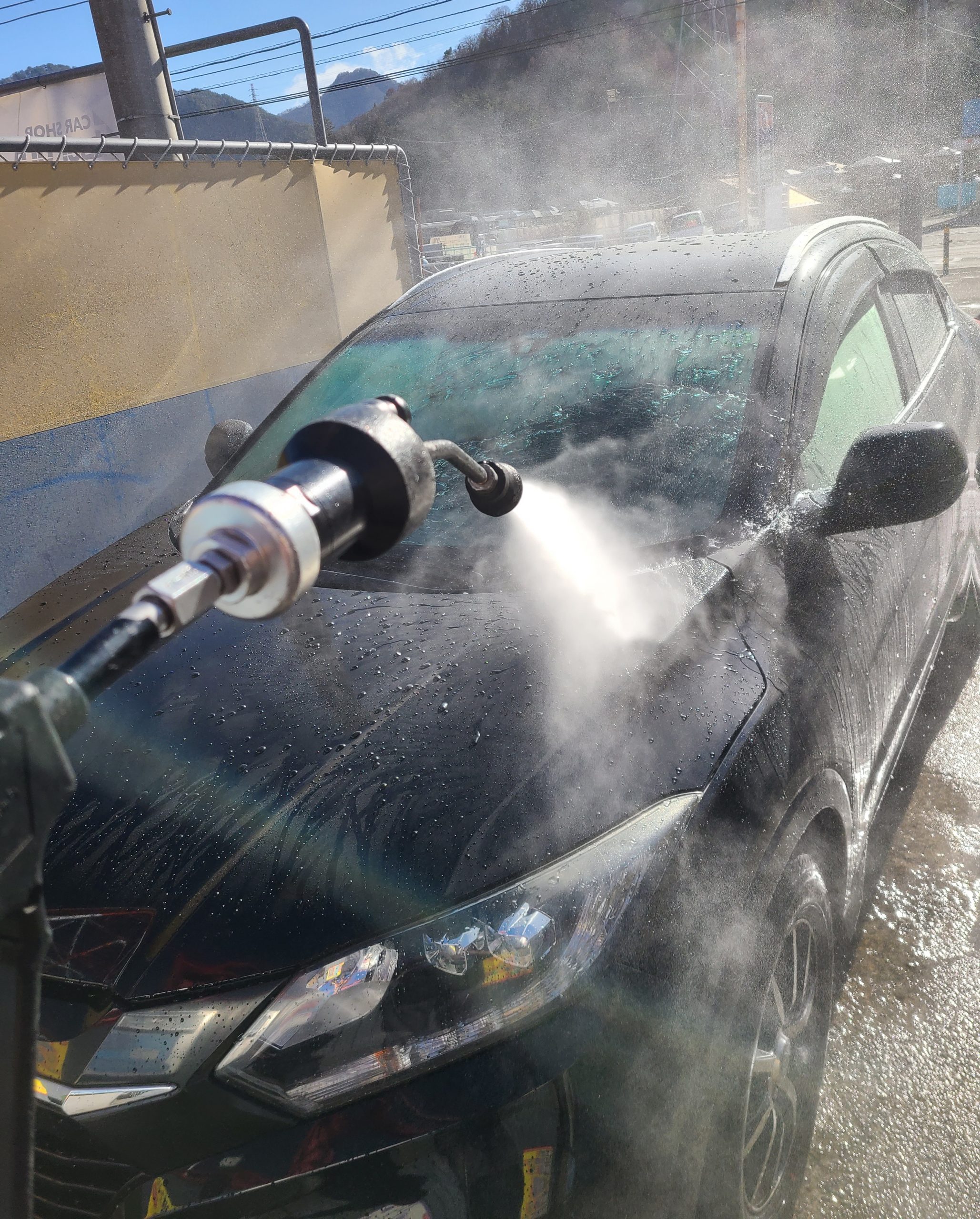 高圧洗浄機の威力はすさまじいですね!霜とか水たまりとかでできた汚れも一発ですよ?