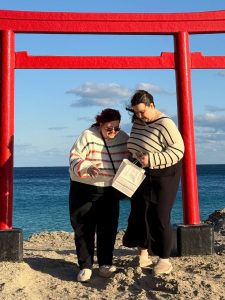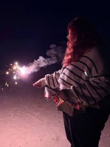 その後、お参りをして新年のお願いごとをし、写真を何枚か撮ってから、白浜ビーチへ移動して手持ち花火をしました。海辺はとても寒かったのですが、手の中で花火がパチパチとはじける瞬間は、言葉にできないほどワクワクしました。気づけば、少なくとも2時間は花火をしていたと思います。私と姉が、4人分よりも明らかに多すぎる量の花火を買ってしまったようです…!(笑)