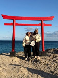 広大な海に近い場所だったので風はとても強かったのですが、景色は本当に素晴らしかったです。海に面した鳥居に行くのは少し大変でしたが、この日の写真や景色の中でも、特にお気に入りのひとつになりました。その後、駐車場に戻るために海沿いを歩いたのですが、何と私たちの中のひとり(何を隠そう、私の姉です)は、海の中を歩いて戻っていました(笑)