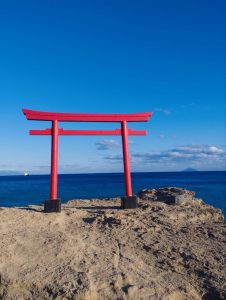 The wind was incredibly strong this close to the open ocean, but the view was simply incredible! The seaside torii was somewhat difficult to get to, but I can safely say, these may be some of my favorite pictures and views from this day! We then walked along the beach to get to the car park, though some of us (namely, my sister) actually went and walked THROUGH the water! According to her, it was the perfect temperature to swim in, haha!