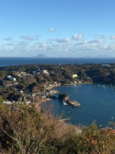 The rest of the day was spent playing board games and just having a good time, relaxing! The 3rd of January was our final full day in Izu, so we decided to revisit Shimoda proper and went up the ropeway to the Aizendo temple. The view from the ropeway was beyond stunning – with the weather so clear too, we could see the horizon and ocean in the most beautiful hues of blue.