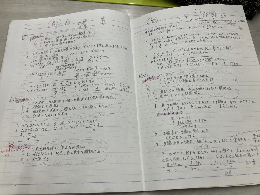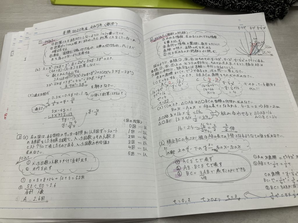 と、話は変わって、中3生には先日直しノートを作成してもらいました。