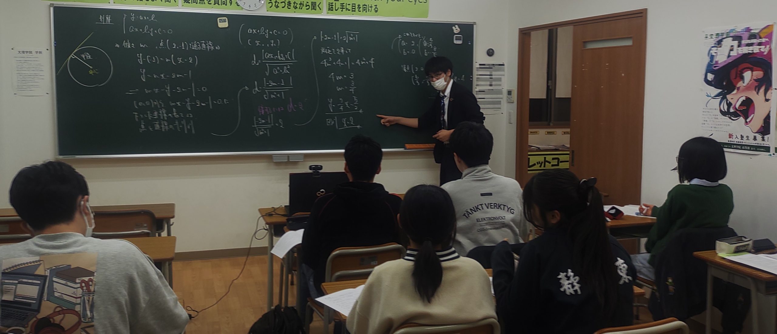 写真は新高2ハイレベルクラスの数学の授業を実施している奈良先生です。この4月からは唐瀬校高等部の校舎長となります。次のブログでは奈良先生本人から挨拶の記事を書いてもらう予定です。1点だけ紹介させてもらうと、奈良先生には唐瀬に通う皆さんとの共通点があります。それは…高校生のとき文理に通っていたということです。しかも、自分が文理に入社した最初の年に指導した高3生でした。(ところで、4月からの千葉はというと、いなくなるわけではなく、唐瀬・豊田と英語の授業をして回るようになるので、引き続きよろしくお願いします。)