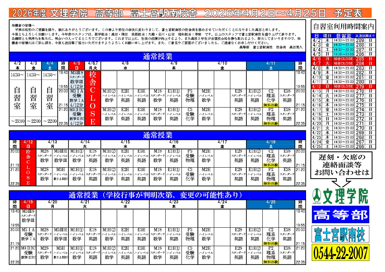 4/8(水)~18(土)で、文理学院長泉校で無料体験授業を受けることができます。