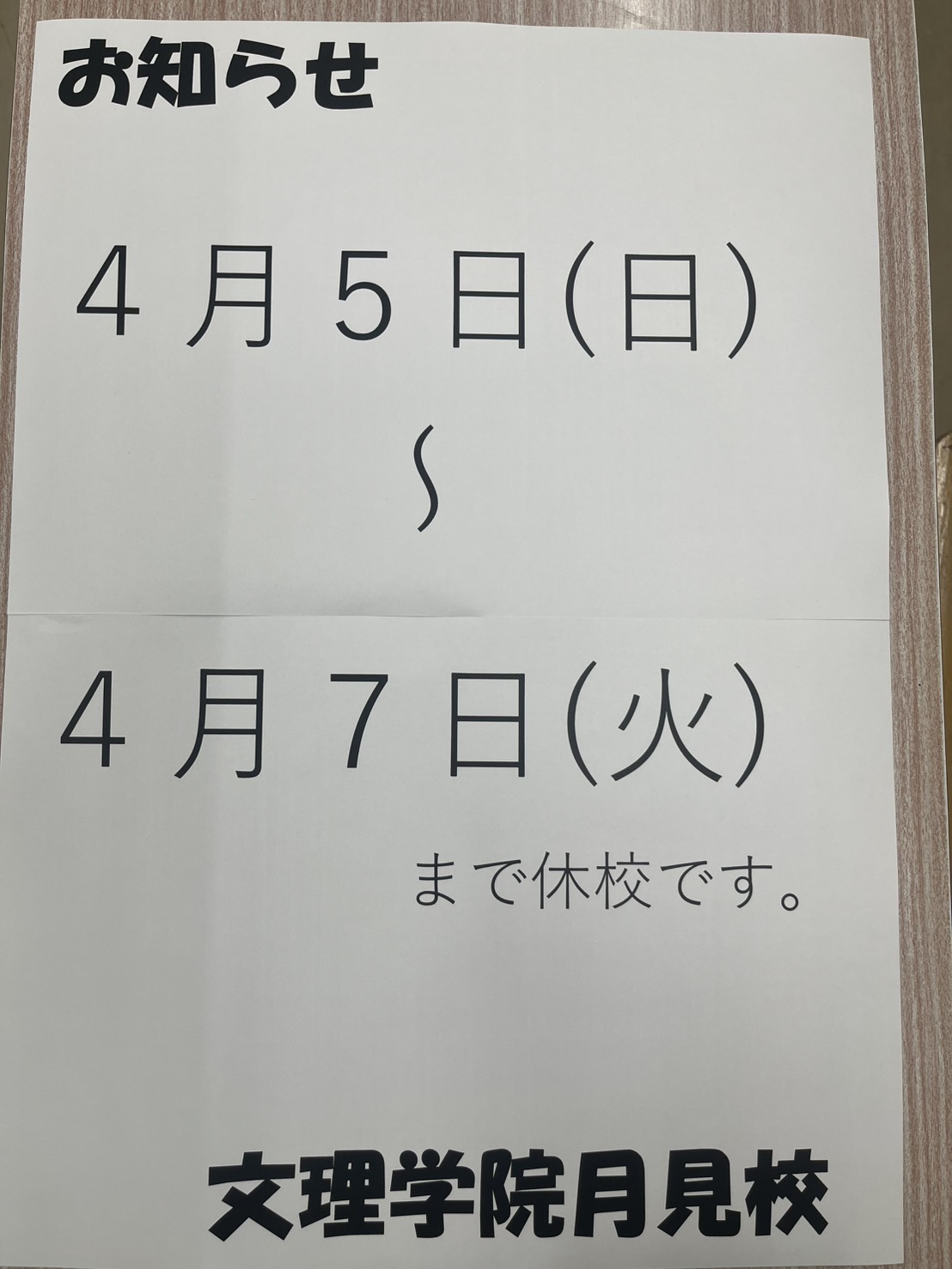 4/5(日)~4/7(火)休講