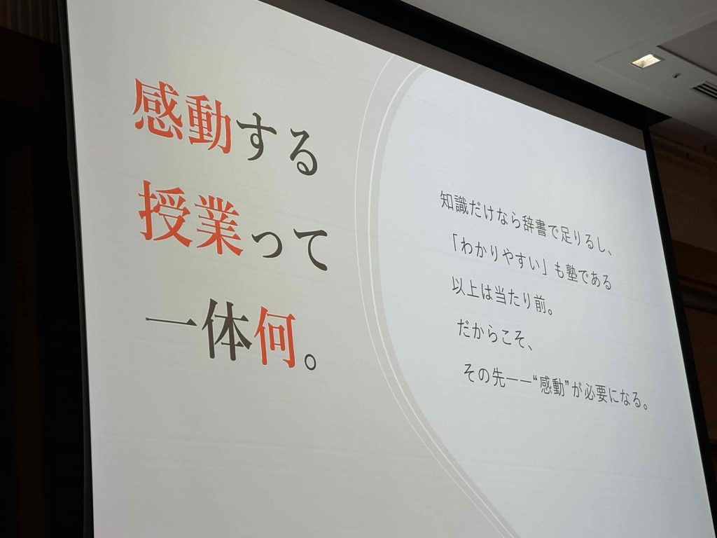 塾ですから商品はもちろん授業です。教わりに来る場所だからこそ、授業以外はサイドメニューにすぎません。カレー屋さんが「うちのカレーの魅力はらっきょなんですよ」とは言わない。だからこそ、その授業に磨きをかけて、1回1回の授業で感動を与える授業をします。