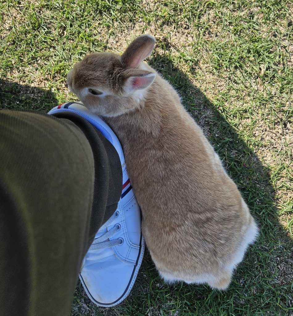 初めての場所だったので、緊張して私の足元にピッタリとくっついています。笑