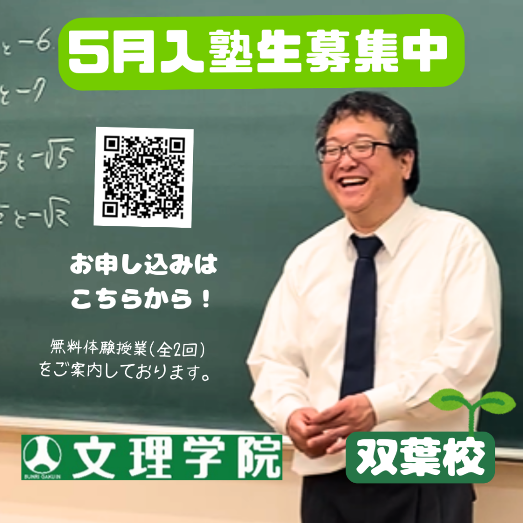 さて、文理学院双葉校では、5月入塾生を募集しております。