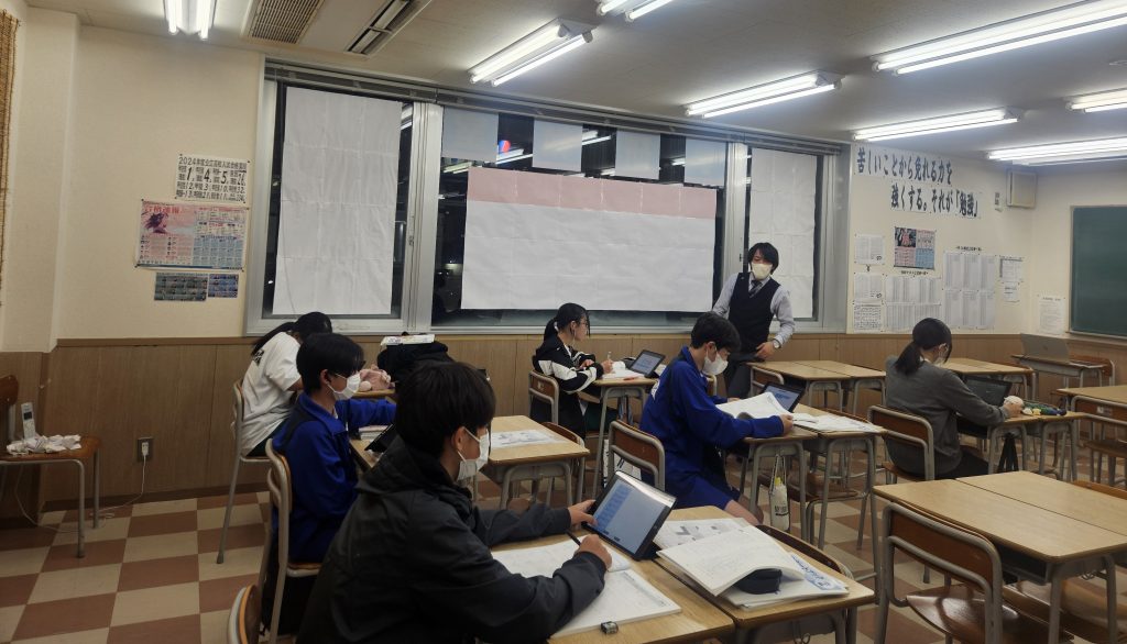 通常授業の一環として、中2生を対象に「日本の気候」の対面授業を実施します。