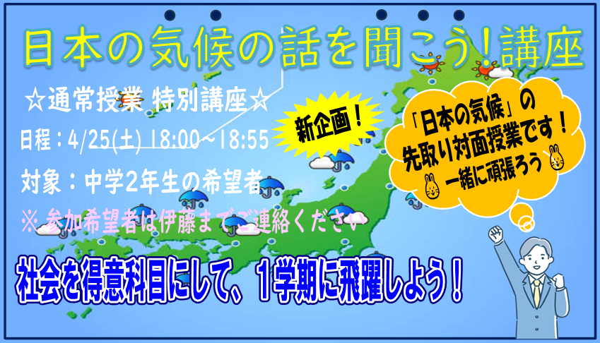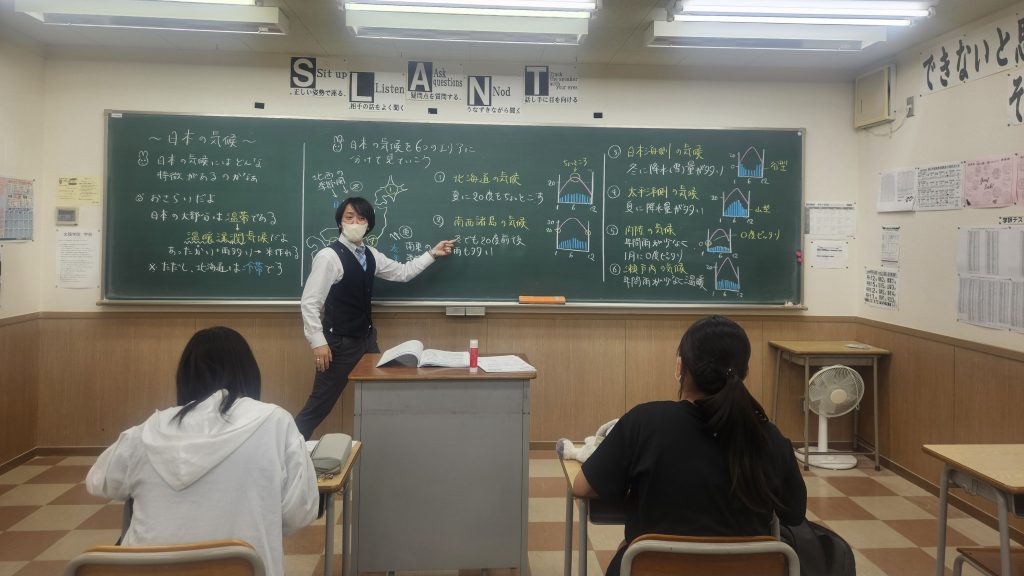希望者を対象とした、社会の地理「日本の気候」の対面授業です。