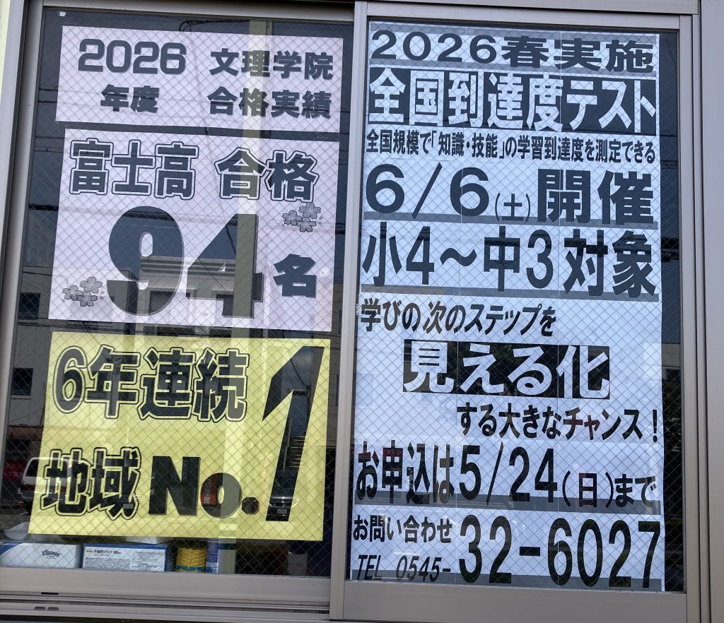 早速ですが、窓掲示をTOP高模試から全国到達度テストへ。