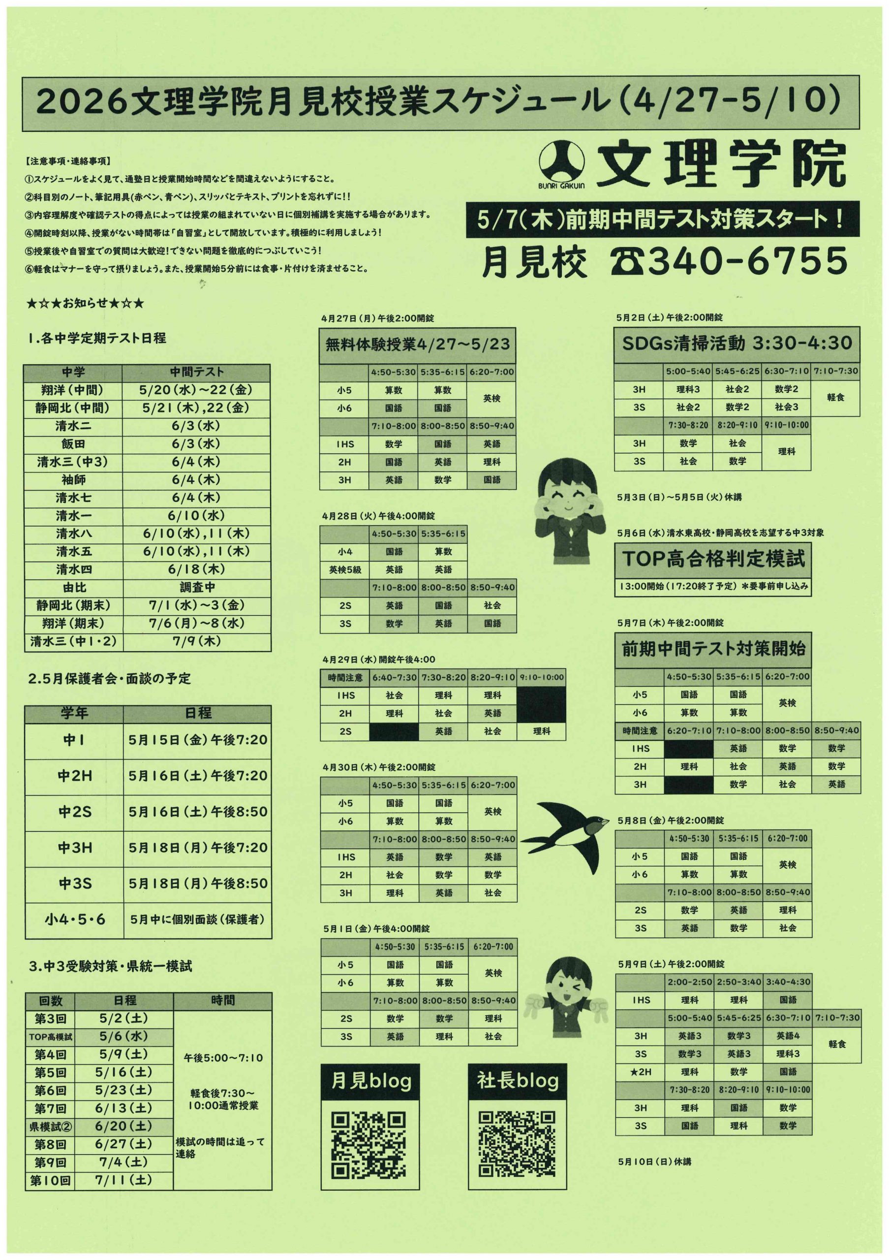 ☆☆☆5/3(日)~5/6(水)GW休校☆☆☆