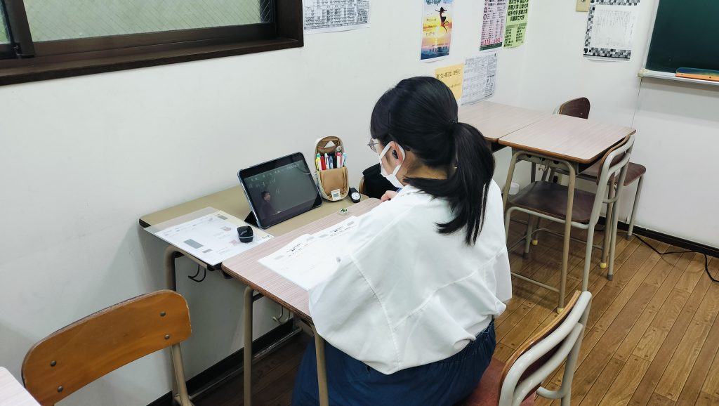 今日も4時前から御殿場南高1年のKさんが英語と数学の受講を行っています。