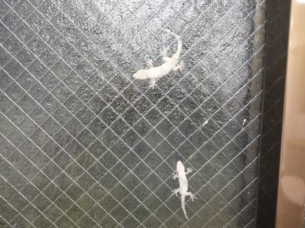 先ほど、自習室の掃除をしていたら2匹の家守が見守りに来てくれました。