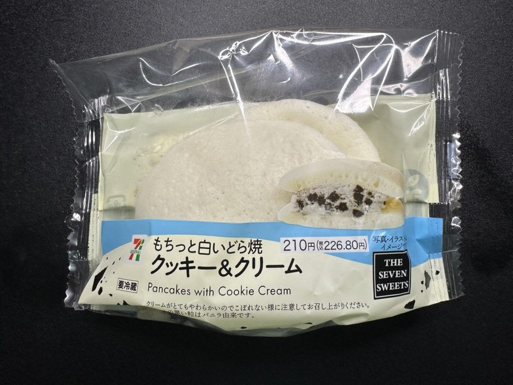 まず、どら焼きとは銘打っていますが、生地が普通のどら焼きとは違い、もっちりしっとりしており、口が乾いて飲み物が欲しい~なんてことはありません。中のあんについては、とても甘いバニラ味のクリームにクッキーの食感がアクセントになっており、某カップアイスのクッキーバニラに非常に近い味でした。超甘党でクッキー&クリーム好きの私は大変満足です。