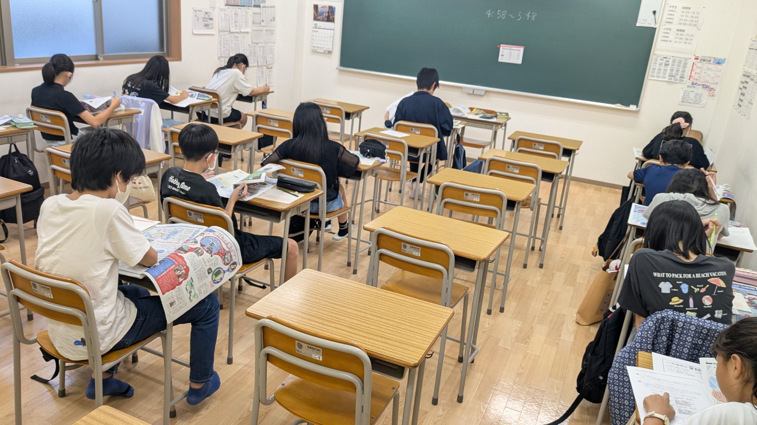 豊田校では昨日から新聞検定を実施しており、今日は小学校5年生、6年生と中学1年生