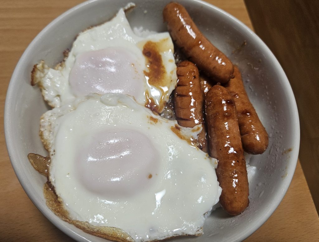 おいしい目玉焼きウインナー丼を食べることができて、満足できました^^