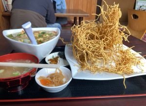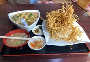 わかりづらいかもしれませんが、かた焼きそばの下にご飯がど~~~んとあります。