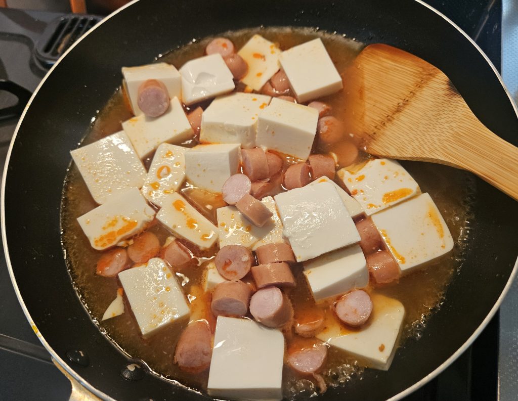 豆腐と・・今回はひき肉ではなくウインナーを使ってみます(o^^o)