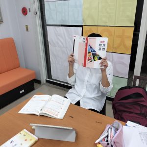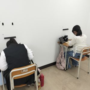 高校生優先席で学校の課題を進めている清水南高1年Uさん。2時間集中して課題を取り組みました。8月に静岡県の高校生代表20名の一員としてモンゴルへ研修旅行に行って来ました。