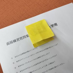 Fさんは11月の推薦試験に向けて今週の金曜日から面接練習を始めていきます。今日、面接練習用の質問集を作り本人に渡しました。また添削した志望理由書等も渡しました。