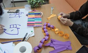 今月のホームルームは、10月18日に開催されるハロウィンパーティーに向けて準備を進めています。企画、準備、実行まで生徒主導で行っております。今週は教室のレイアウトを決めたり、壁に飾り付けをしたり、実際にゲームをどうしたらより面白く感じるか、どう進行していくか、などを考えました。