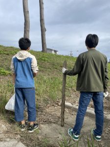 小さいゴミを見つけ出す大里中3年生の二人!!