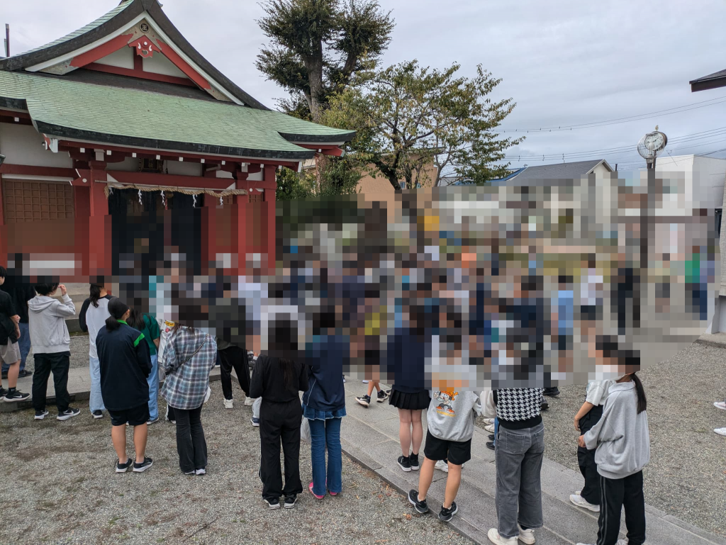 いつも通り、神社の清掃を行い、みんなでお願いごとを。