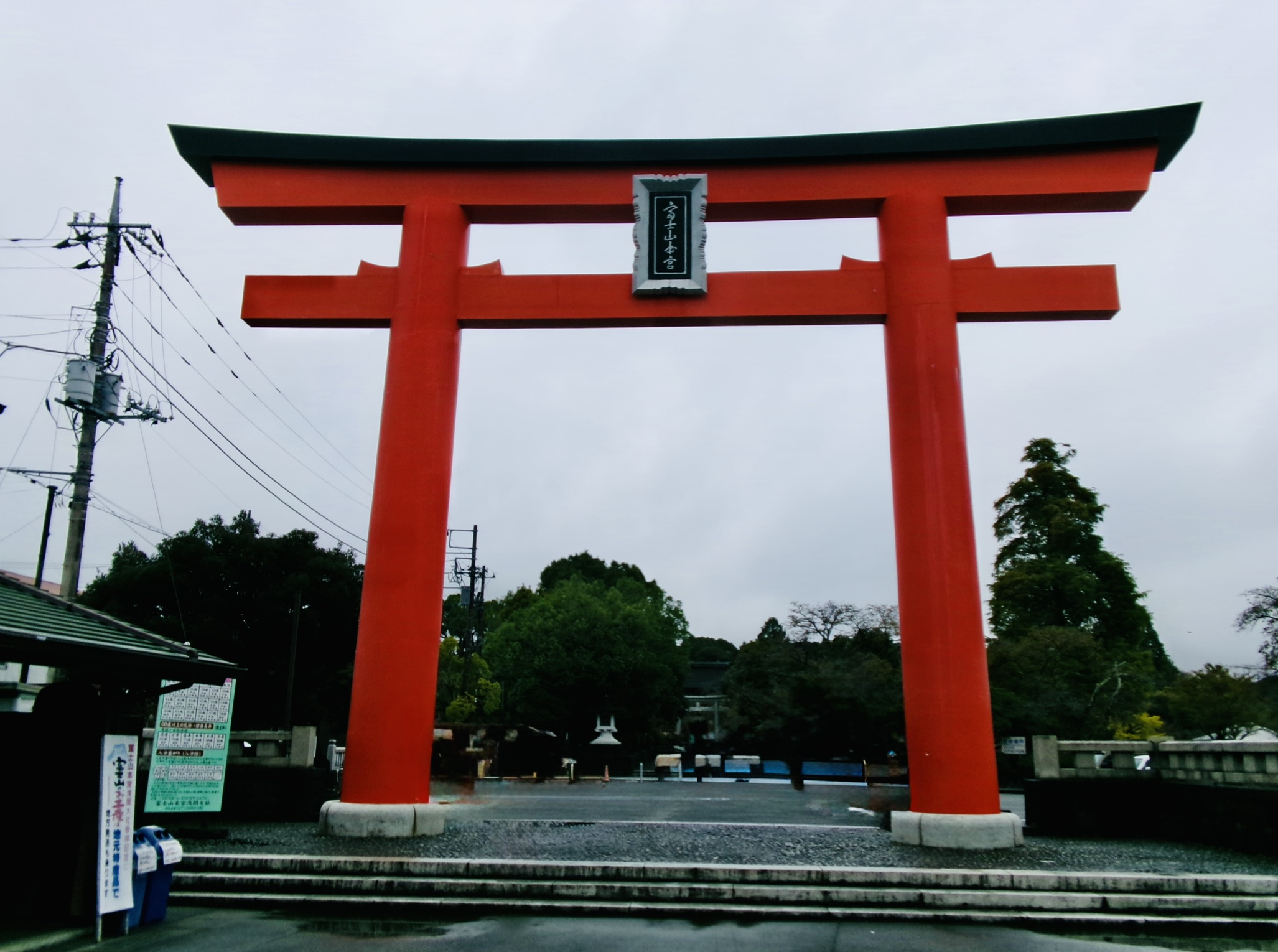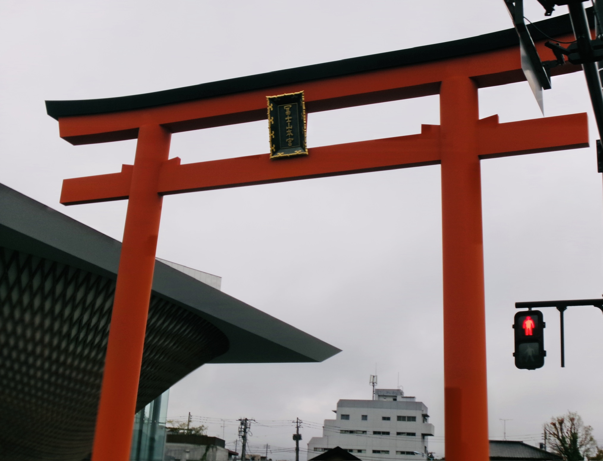 浅間大社の入り口にあたる一の鳥居。奥の桜門前には二の鳥居もあります。