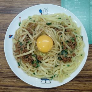 生たまごを乗せたせいでか薄味です。もう、生たまご麺。 (´;ω;`)