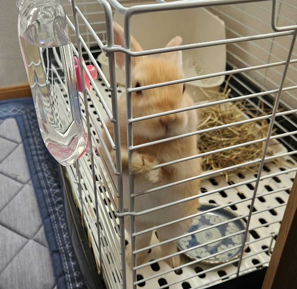 昨日、ご飯の袋を持って近づくと、ねぎまくんがゲージにつかまって二本足で立つとご紹介しましたが、その様子がこちらです。笑
