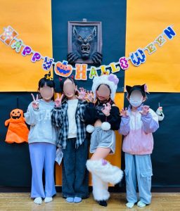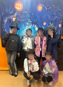 残念ながらお顔は隠していますが、みんな笑顔でとても楽しんでいる様子がうかがえます!昨日10/28(火)に実施したパーティーです(*^^*)