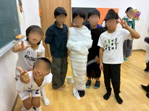 ハロウィンと言えば、Mummy Game(ミイラゲーム)!どのチームが一番早くミイラを完成させられるかを競うゲーム(*^^*) 大盛り上がりした雰囲気が伝わってきますね♬
