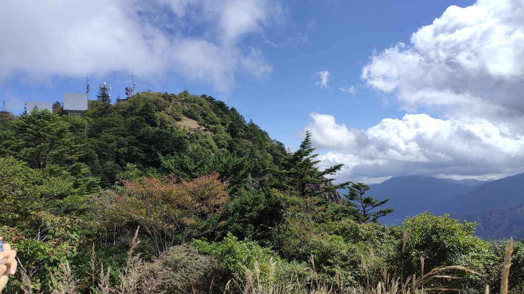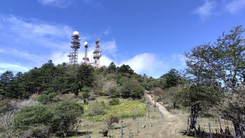甲府盆地からも見える、山頂の人工物(電波塔)の存在感がすさまじいです。