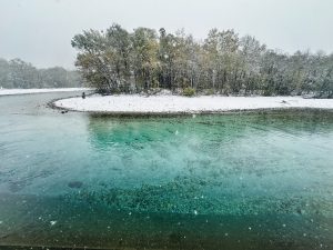 冷たい空気に包まれながらも、その透明な美しさに思わず息をのみました。こんな雪の上高地は、なかなか経験できない貴重な瞬間です!お気軽ハイキングの装備で来ていたので、雪と寒さに一瞬ひるみましたが、上高地は11月半ばから通行止めになり行くことができなくなるので、こんな機会はないぞっ!と迷わず一歩を踏み出しました!