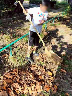 熊手の使い方がプロ級の小5、Tくん。