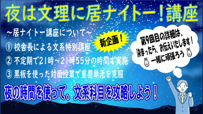 第⑧回「夜は文理に居ナイトー!講座」✏
