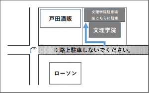 路上駐車せず、校舎裏の駐車場をご利用ください。
