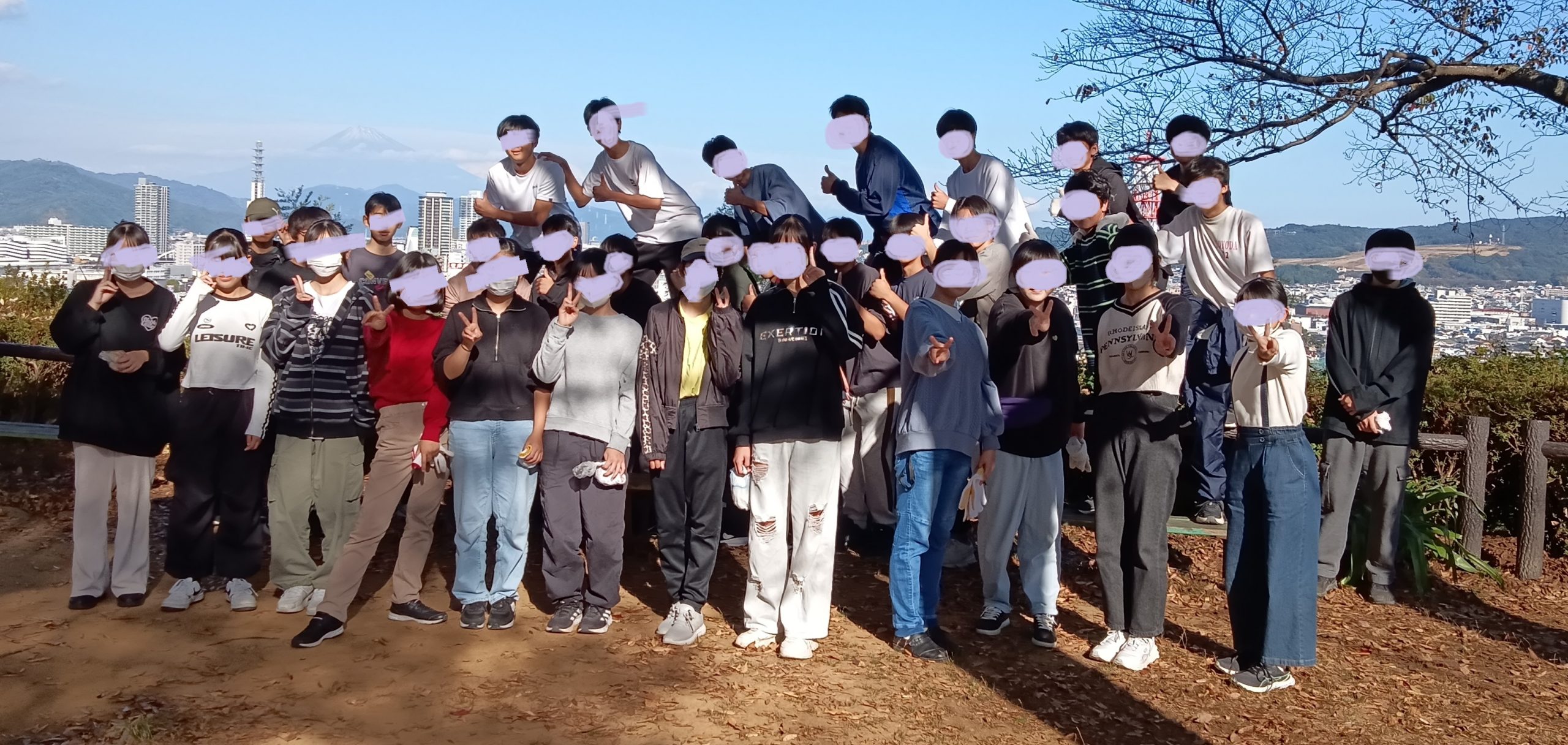 昨日のSDGs清掃活動の一コマです。後ろの空のように晴れやかに、公園も心もなりました。この後の勉強もはかどりましたね。今年度、もう一回やりたいと言ってくれた生徒が多くてビックリしました。