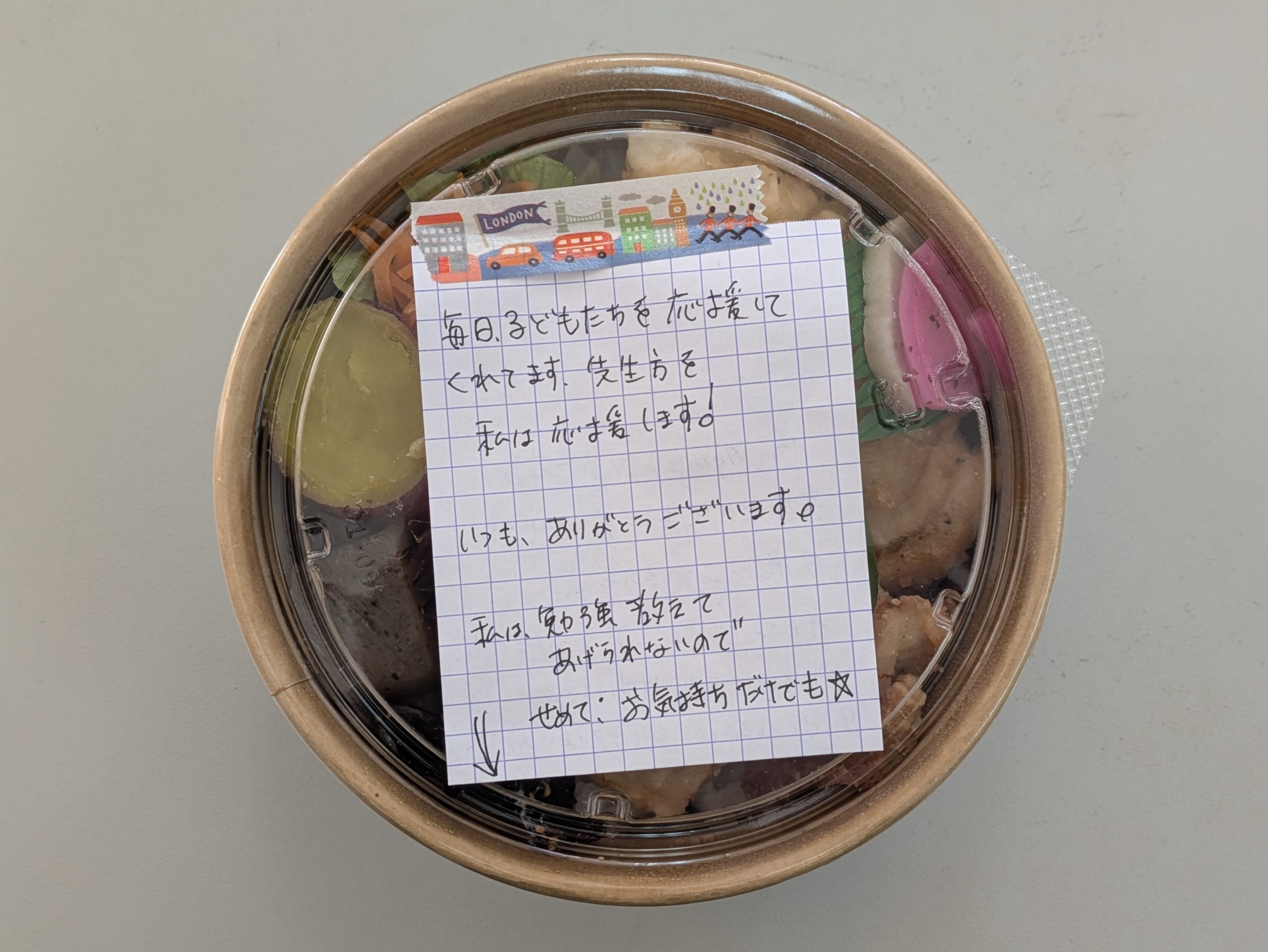 保護者様より差し入れをいただきました。そして温かいメッセージも!!お心遣いいただき誠にありがとうございます(*^-^*)