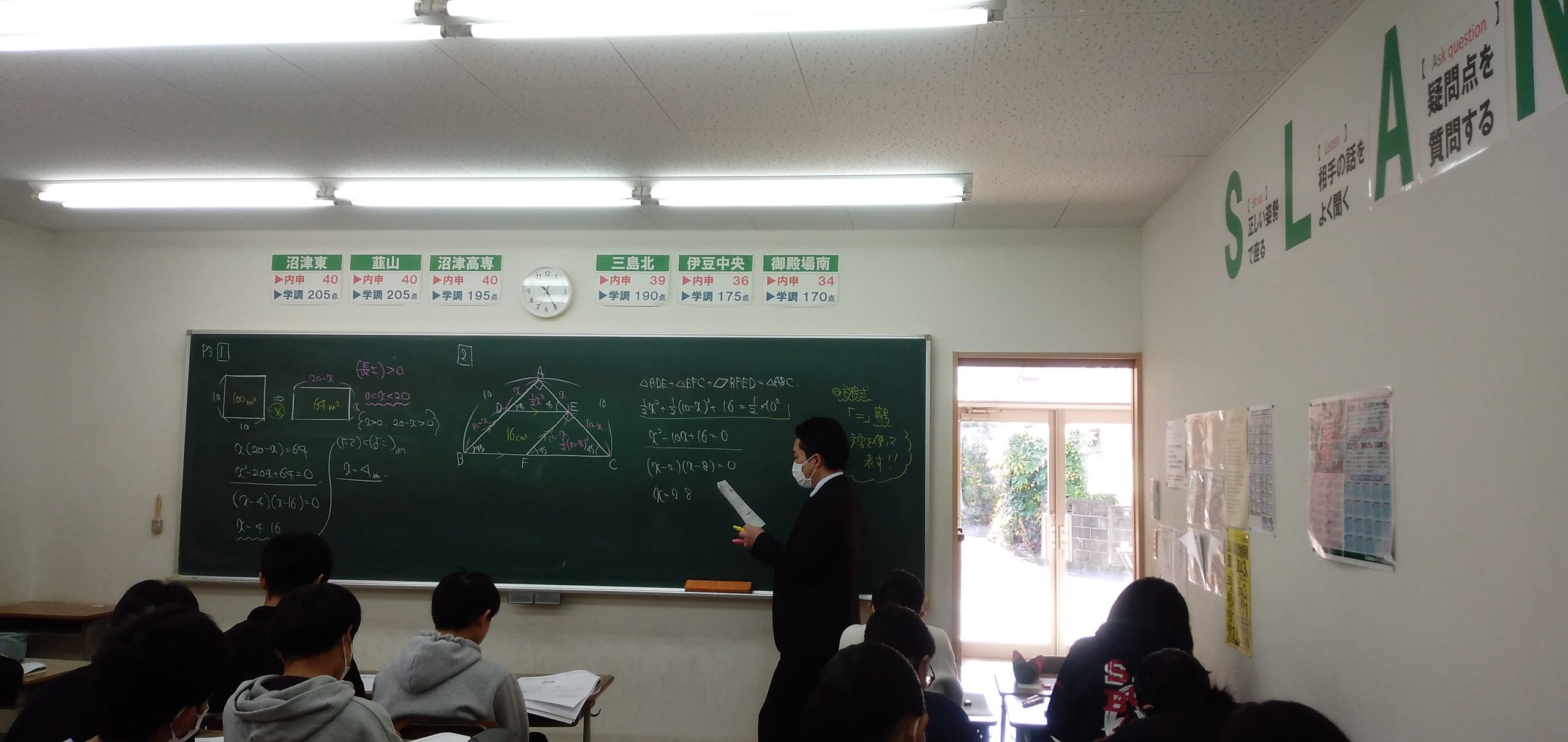 長泉校の中3生は、全員で75名。10月の模試の結果を受け、3つのクラスに分けて授業を行っています。